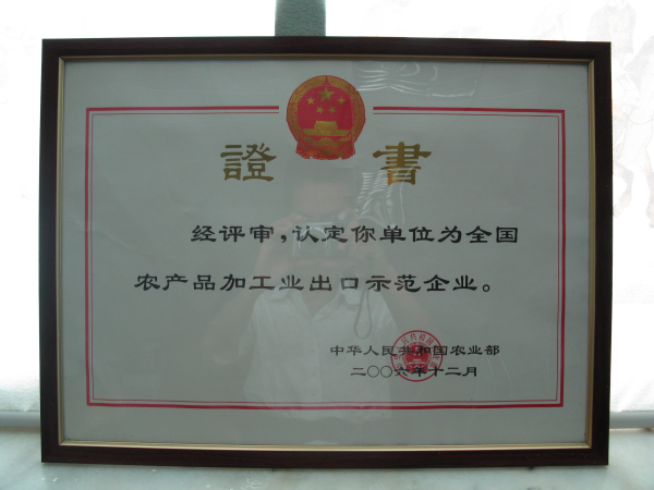 全國(guó)農(nóng)產(chǎn)品加工業(yè)出口示范企業(yè)