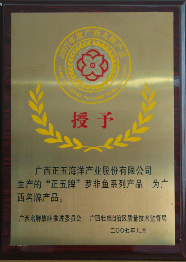 “正五”牌羅非魚(yú)系列產(chǎn)品廣西名牌產(chǎn)品