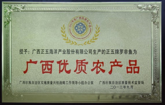 “正五”牌羅非魚(yú)被評(píng)為廣西優(yōu)質(zhì)農(nóng)產(chǎn)品